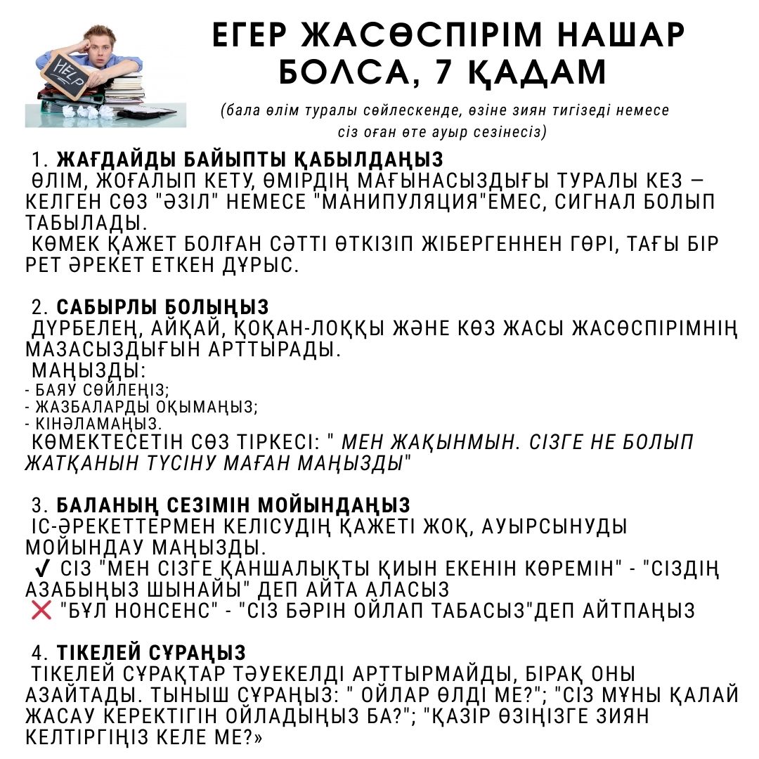3. Өзіне-өзі қол жұмсау қаупі бар жасөспіріммен жұмыс істеудің жеке жоспары.