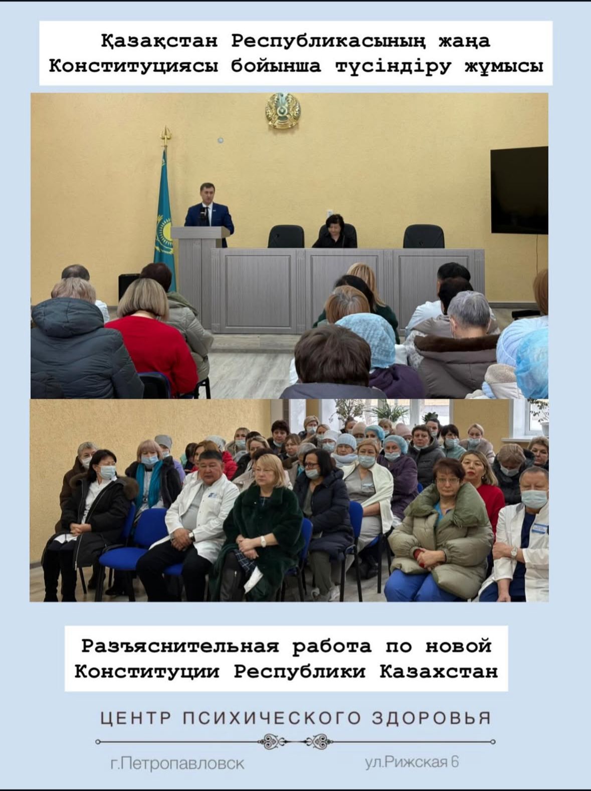 Психикалық денсаулық орталығында қызметкерлермен жаңартылған Конституцияға арналған түсіндіру кездесуі өтті. Құрғақ терминдермен шектелмей, өзгерістердің әрқайсымыздың өмірімізге қалай әсер ететіні талқыланды. Қызметкерлердің белсенді қызығушылық танытып, сұрақтар қойып, өз ұсыныстарын білдіруі қуантты.