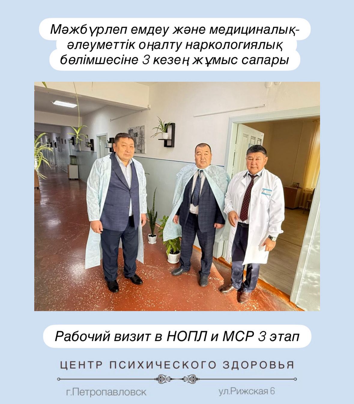 2 қазанда Денсаулық сақтау басқармасы басшысының орынбасары М. Ш. Байғұлов Жамбыл ауданы Благовещенка ауылында мәжбүрлі емдеу бөлімшесіне жұмыс сапарымен барды. Сондай-ақ, медициналық-әлеуметтік оңалту бөлімшесі бар (3 кезең).