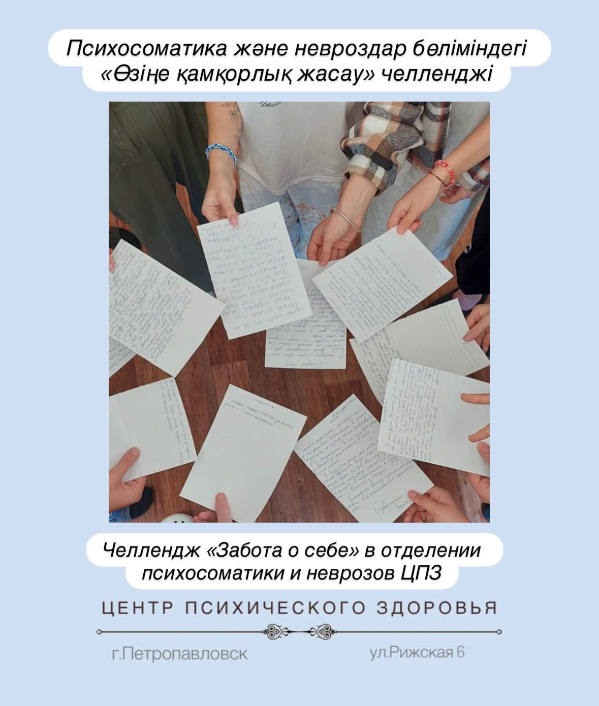 Психосоматика және невроздар бөлімінің пациенттері үшін Психикалық денсаулық апталығы аясында «Өзіңе қамқорлық» челленджі өткізілді.