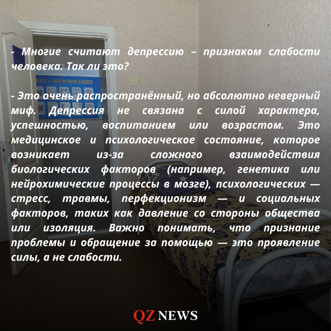 13 қаңтарда Дүниежүзілік депрессиямен күрес күні атап өтіледі. Ауру Солтүстік Қазақстан облысында да өзектендірілді. Депрессия аймақта қаншалықты жиі кездеседі және оны әдеттегі шаршаудан қалай ажыратуға болады – бұл туралы QZ News тілшісі психикалық денсаулық орталығының психиатр-дәрігері Марина Шакубаевамен әңгімелесті.