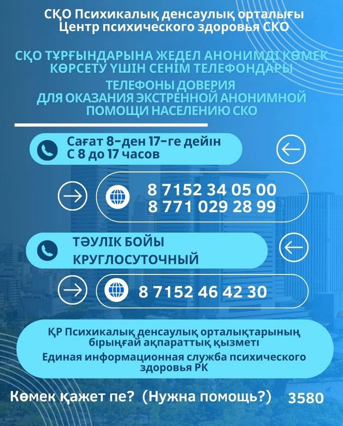Петропавл қаласының анықтамасы, 2018 ж. Дәрігерге дейінгі шұғыл көмек 108 сағат. |