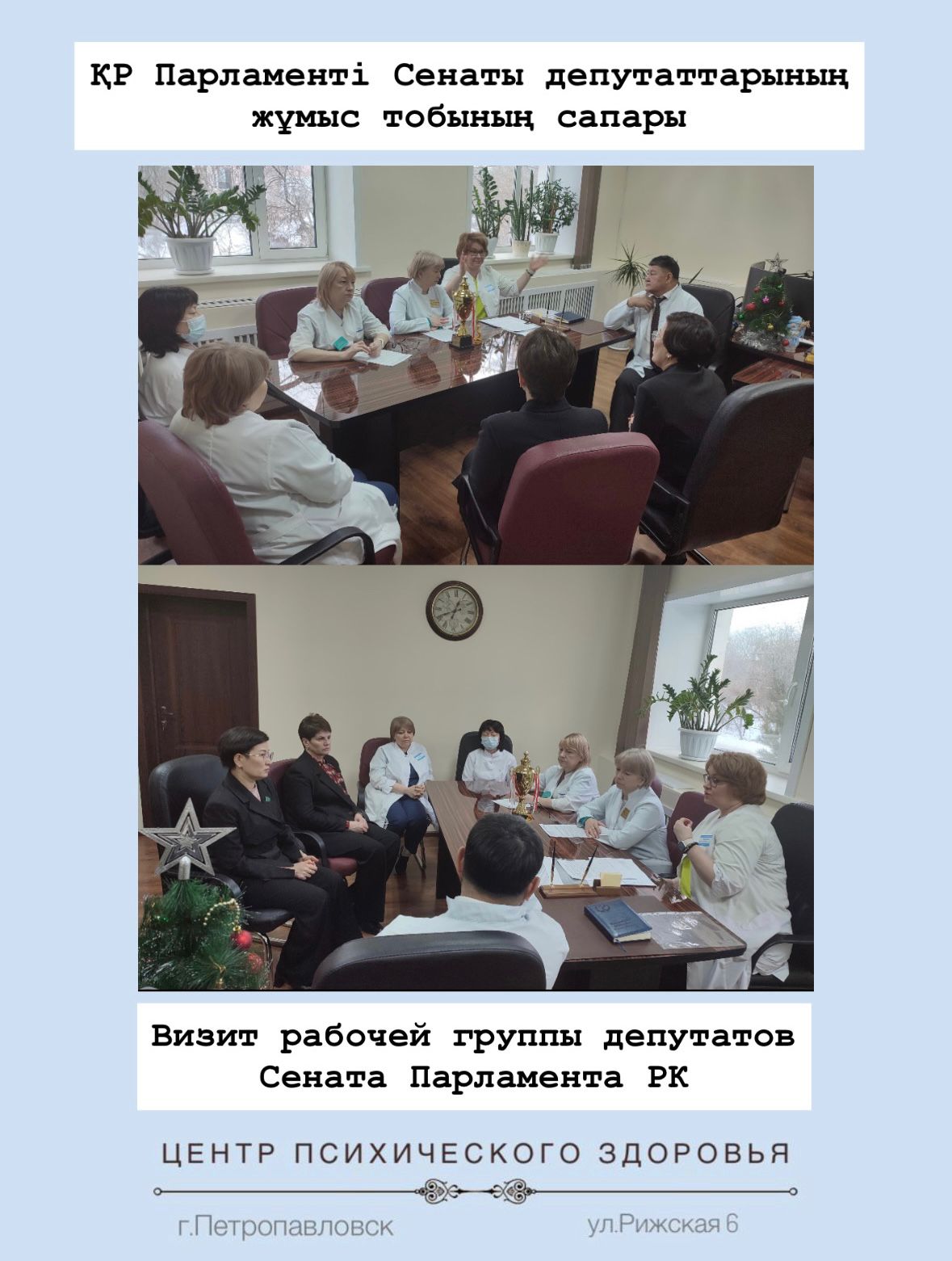 2025 жылғы 9 қаңтарда психикалық денсаулық орталығына Қазақстан Республикасы Парламенті Сенатының депутаттары А. К. Рахметова мен О. в. Перепечина, сондай-ақ Солтүстік Қазақстан облыстық мәслихатының төрағасы В. С. Бубенко барған жұмыс тобы келді.